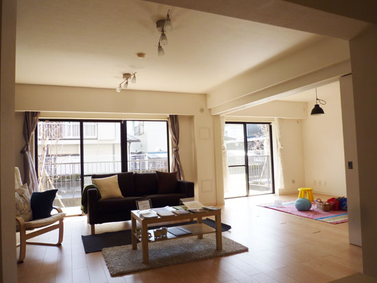 (リビング)古びた和室を、隣のリビングと続くフローリングとして明るくて広々と使える空間にしました。