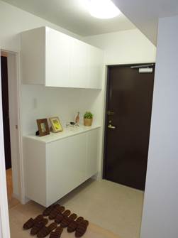 (エントランス)家の中心にあり、自然光が入りにくく暗い感じでしたが、明るいイメージにデザインしました。