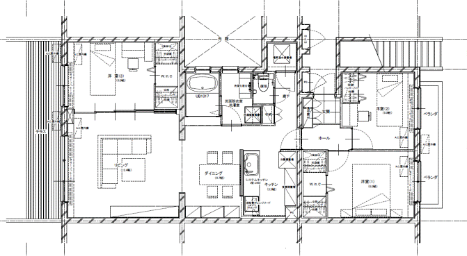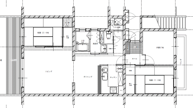 (Before)壁式構造で細長いレイアウト 中心部分の暗さが問題でした