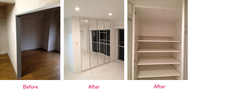 ミラー収納でリビングを広く演出&収納力Up