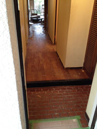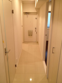 暗くて狭い玄関から石張りの明るく、清潔感のある、高級感のある広い空間に