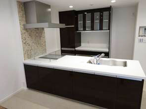 壁面の収納や、リビング側にも収納を設置して、これまでのお持ちの食器もスッキリと収納できるようになりました。