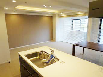 レイアウトの中心にあり、自然光が入りにくく暗い感じでしたが、照明を効果的に配置して明るいイメージにデザインしました。