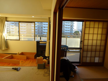 昔の一般的な閉鎖的なキッチンから、和室を解体してオープンキッチンとしました。
