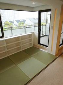 サンルームには、置き畳を設置して和の空間も楽しめるようにしました。