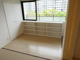 和室があることにより、暗いイメージでしたが、家族構成も変わったので洋室の広々としたリビングに変更し、