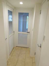 長くて暗い空間でしたが、ルーバードアにするなど自然採光を十分に活かし、明るく広がりのある空間となりました。
