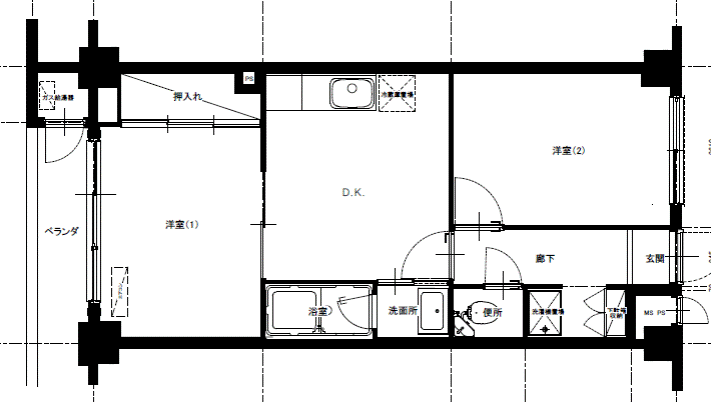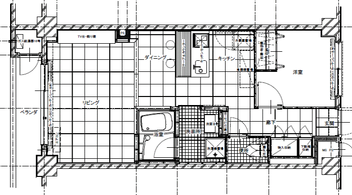 築年数が経過していると水廻りの配管の設置にも限界があるため、キッチンなどの配置にはアフターメンテのことも考慮にいれて設計を行いました。